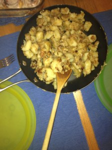 To commemorate our first family dorm breakfast we went all out and made a feast. Bacon, fruit, cinnamon rolls, and home fries. Now these home fries are utterly perfect for dorm living because there are few ingredients, it is easy to cook, and you can really feed a crowd of hungry coeds. Not to mention these will make your whole dorm smell delicious and if you make a batch on sunday you can eat it all week long.
