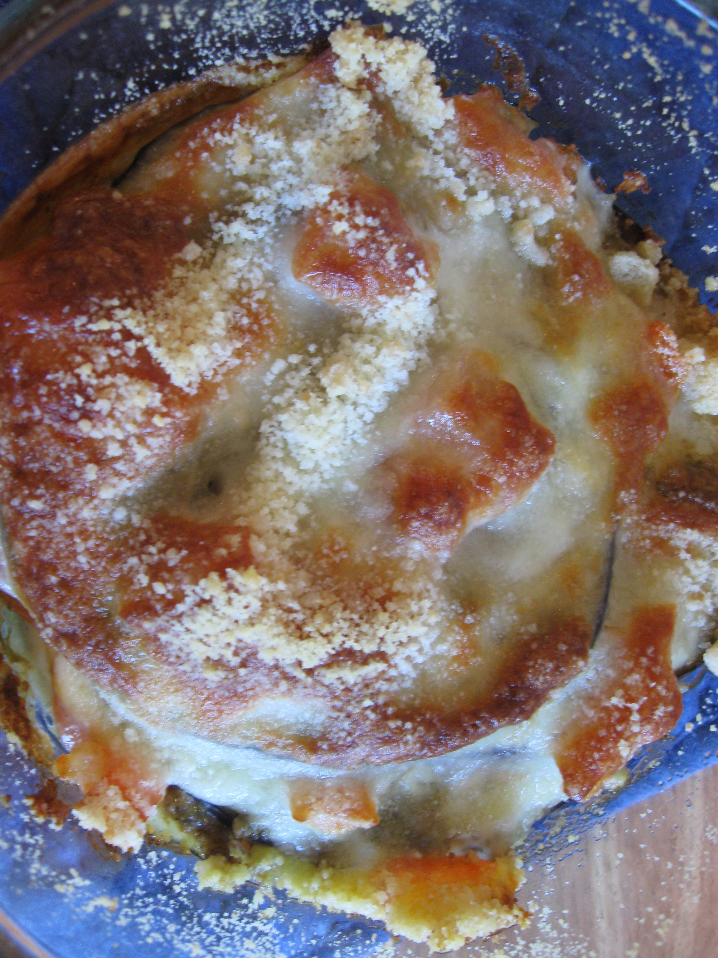 - then it was a layer of tomato, then eggplant then cheese then pesto. Where you put the pesto put the parmesan, and don’t use it for the layers you use the provolone