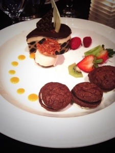 Okay so this blog is usually a place I post my own recipes and that’s it. But last night I had food soooo good it was worthy of a blog post. And I’m not exaggerating here. It wasn’t one of those situations your so damn hungry a French fry off the ground would taste like steak, no no I had eaten a good dinner and wasn’t even that hungry. This dessert could quite possibly be what dreams are made of. And it wasn’t just my dessert, everyone at the tables dessert was amazing and we all got different things. What I got was the Boston cream, well there take on it. Because normally I don’t like Boston cream things, but this way, I would never eat anything else again. But that’s not where it ended, I also had a little ice cream Sandwich with vanilla gelato and cherry almond Florentines, then whoopie pies which were like two pieces of brownie fudge with cream in the middle, and dotted on the plate was apricot sauce and they threw some fresh fruit on there to make you feel a bit healthier. It had everything you wanted, chocolate, fresh, fruit, ice cream, oh man, i would marry the person that came up with that I don’t care who they are or what they look like but in our marriage vows it would say they had to make that at least once a month. The other thing I tried was there molten cake, it was like chocolate volcano of happiness, if you are ever having a bad day, GO here and eat that, you won’t even remember why you were upset, but you’ll also be in a chocolate coma for 2 weeks.