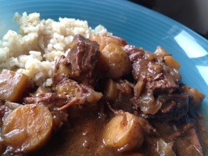 I have been informed that “stew” sounds weird and old, BUT I think it could bring you back to home and happy memories. This recipe is a great comfort food that just helps make a hard day a little easier. Did I mention its a crock pot recipe? Oh yeah, it is, so throw it all into the crock pot and when you come home enjoy a beautiful home cooked meal!
