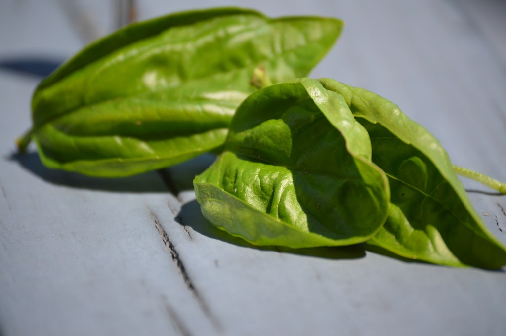 - Ribbon up the basil and place in a bowl, then add in all the oil, vinegar, and lemon juice. Then your spices. Let these marinate up while you are chopping up your veggies.