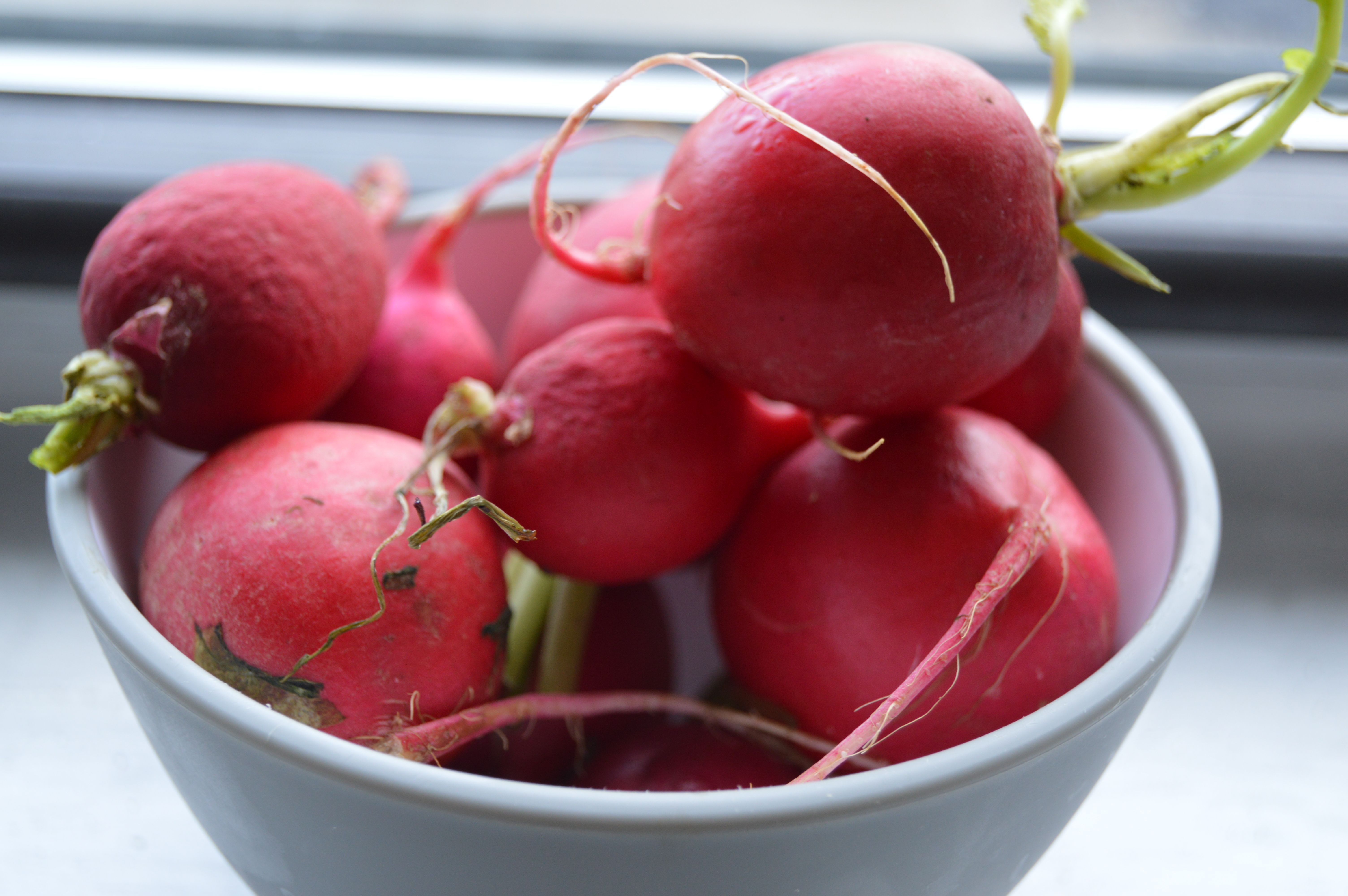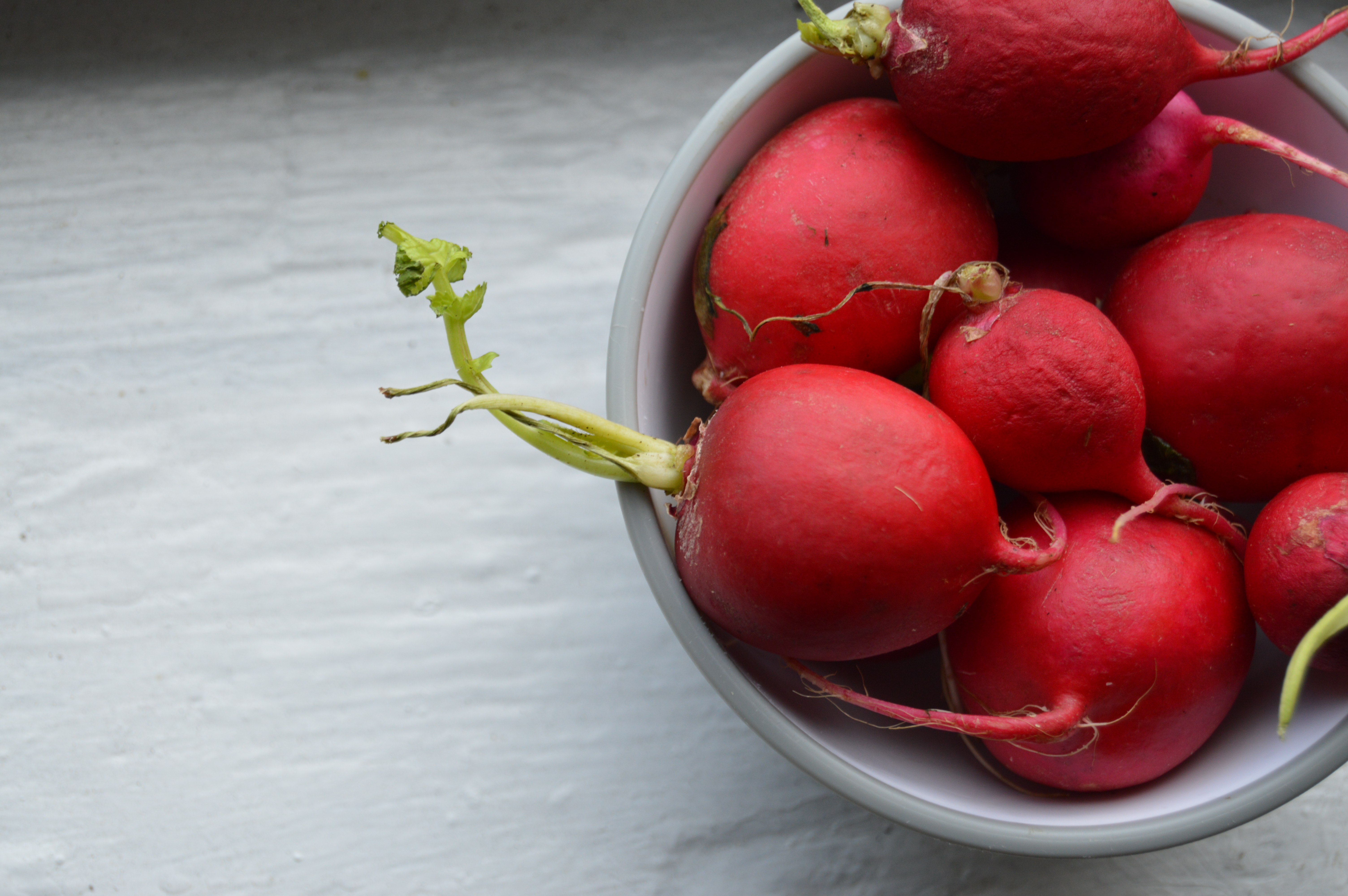 Yes, you read that right. Pesto made from radish greens. The lowly radish green goes completely unnoticed, but it will no longer be tossed aside with the rest of the trash, it will stand tall and elevate the caliber of your ordinary pesto! Lately I have trying to adopt a “waste not want not” attitude. No part of the veggie should go unused! So this recipe was a risk that completely paid off, its so easy and delicious.