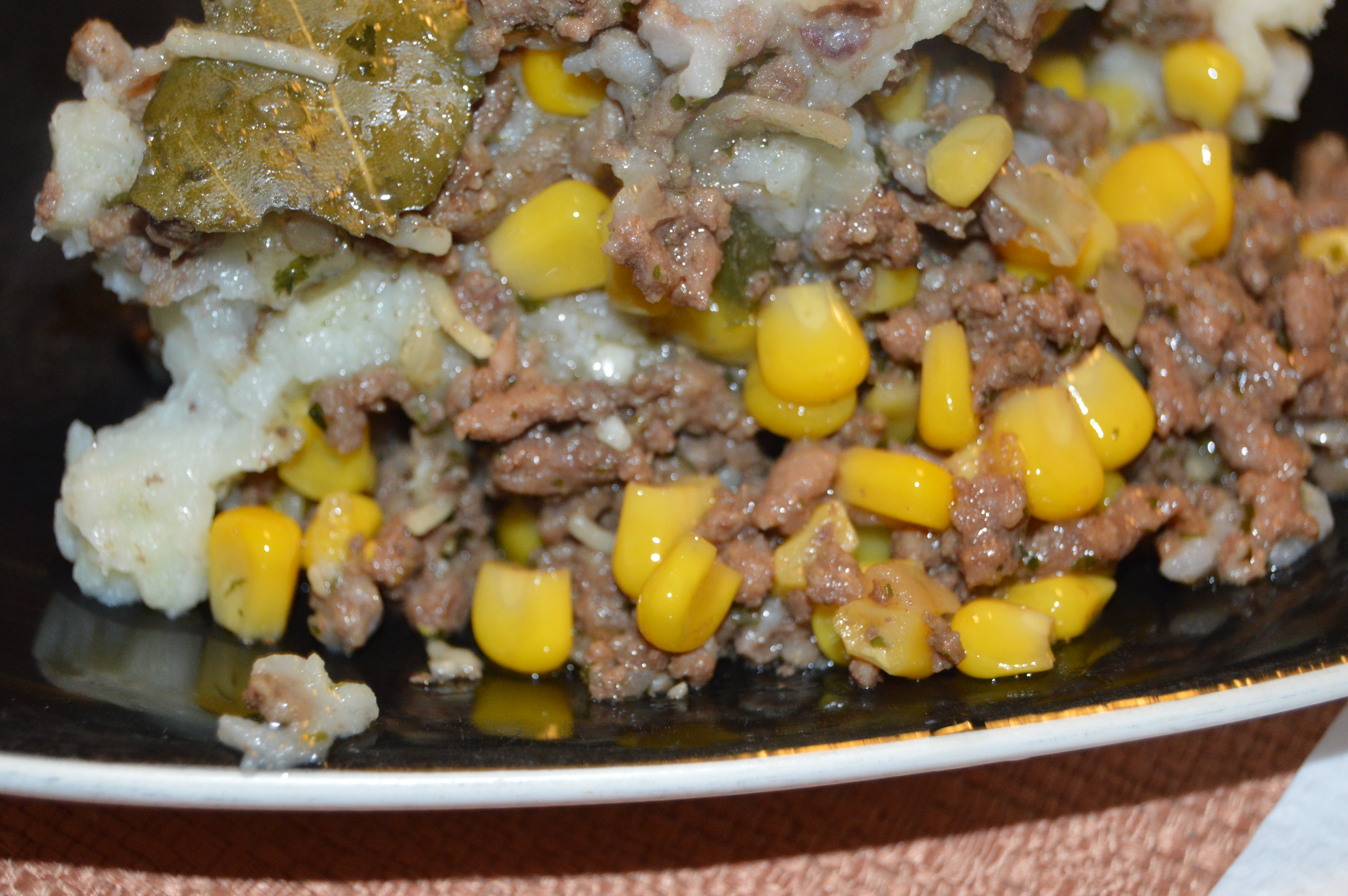 - Then using the smashed potatoes in the recipe provided above, layer that on top of the meat. You want about a inch layer of potatoes, over the meat.