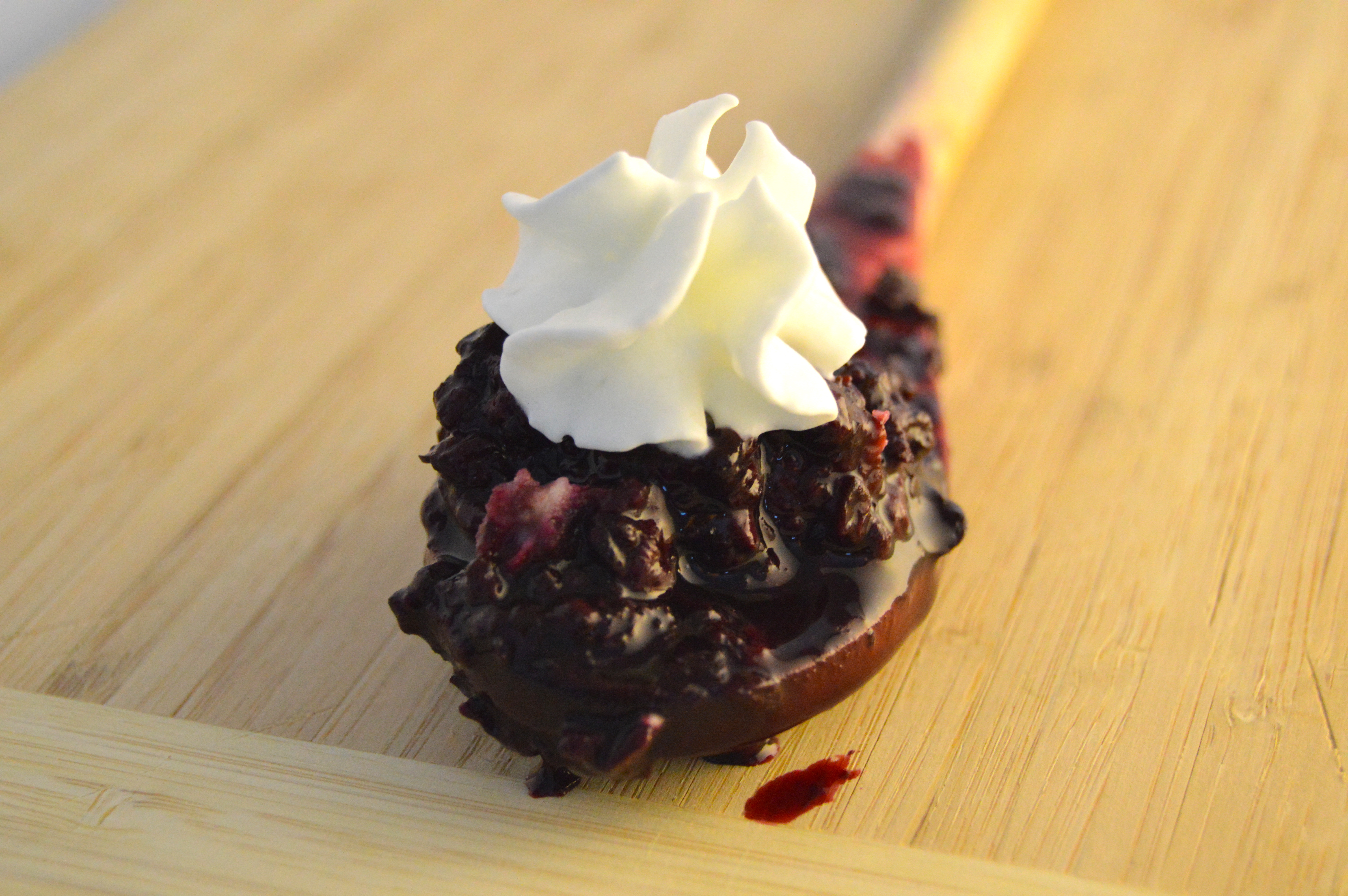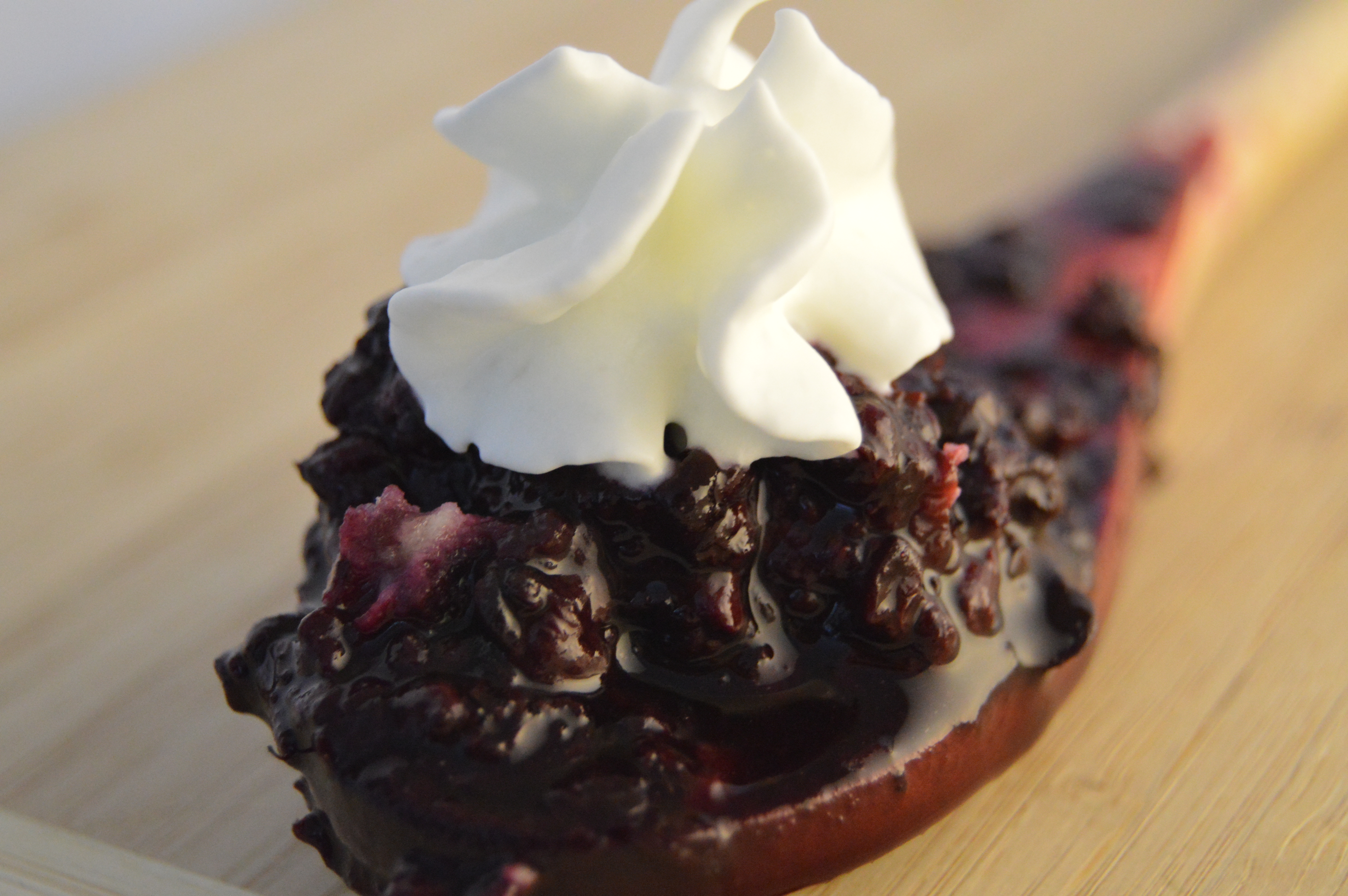 Cleaning out the freezer can uncover some delicious finds. When we were cleaning out our freezer we found a bunch of blackberries that needed new homes… in my belly. I went and made a quick dessert to watch with the Patriots game and not going to take credit for their win… but I am pretty sure they were motivated by the deliciousness. Motivate others with this super easy dessert.