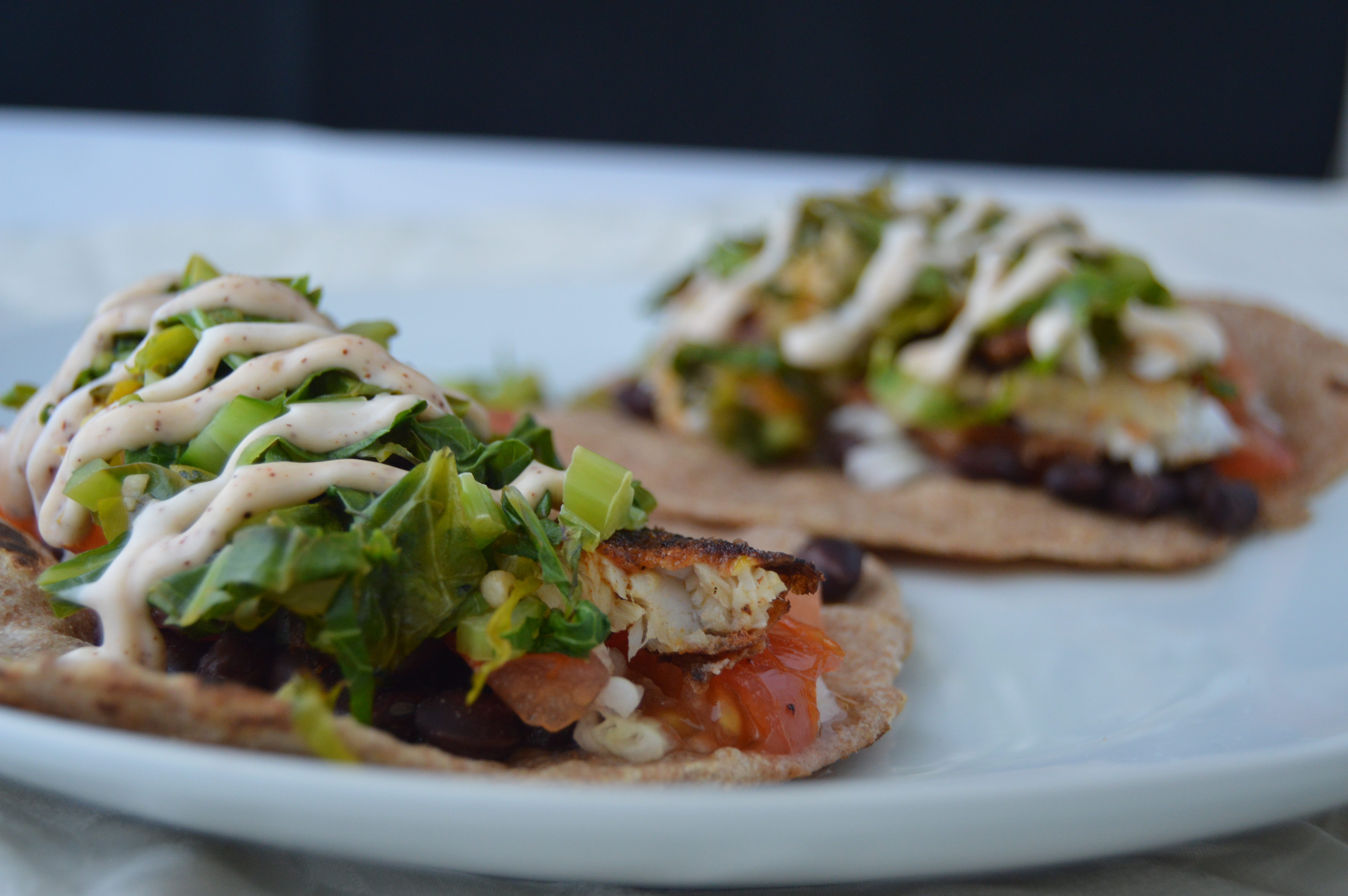 Assemble the tortilla, beans, salsa, collard slaw, fish and cream sauce then eat!