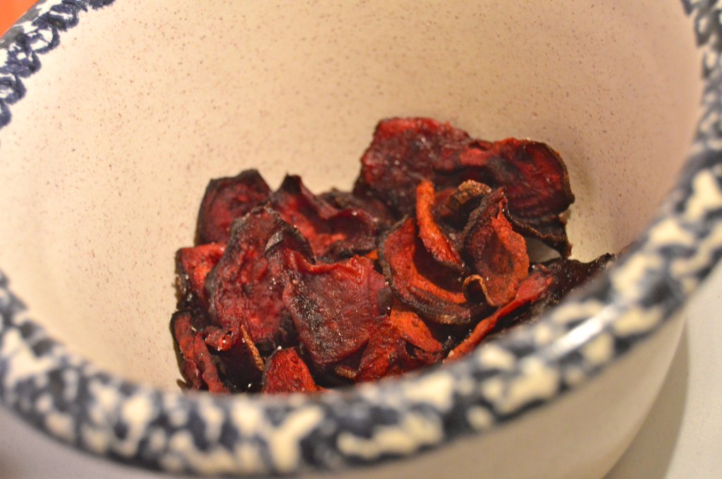 This recipe is a fun and healthy snack, its very versatile and they are absolutely beautiful. These beet chips look like rose petals when they are done. The preparation is the same, but you can change the flavors to match your mood. I experimented with two flavors, but the possibilities are endless.