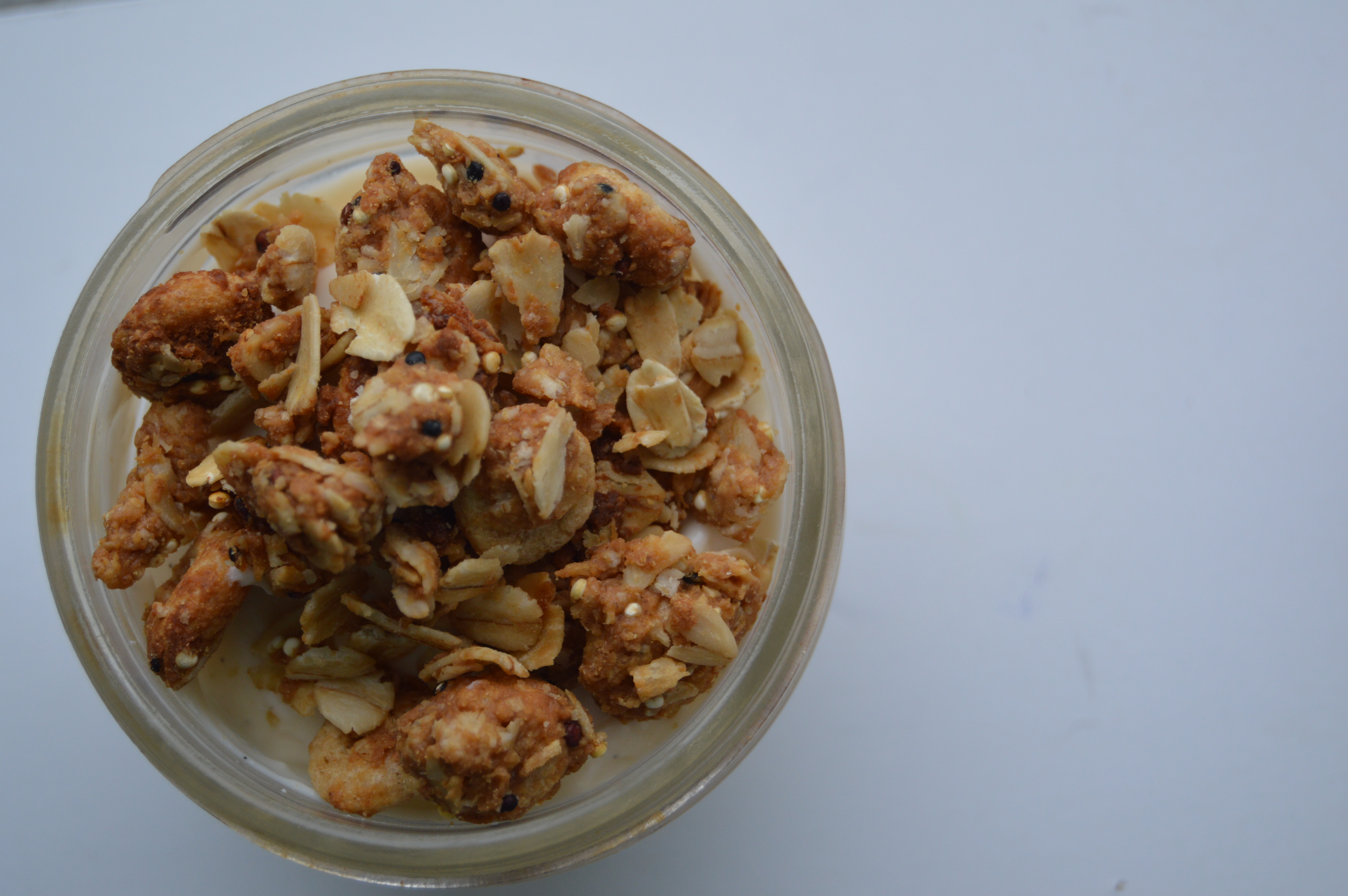 Is there anything that peanut butter is not good on? The answer is no, its great for savory, sweet, EVERYTHING! Therefore, I want to use it in everything. This recipe is a new way to get your peanut butter fix in! I also like to call this fit granola, because I was working out waiting for it to cook! Which is a great way to get your workout in, while also getting your cooking done! This recipe is really easy, and will last for up to 2 weeks in a sealed container!
