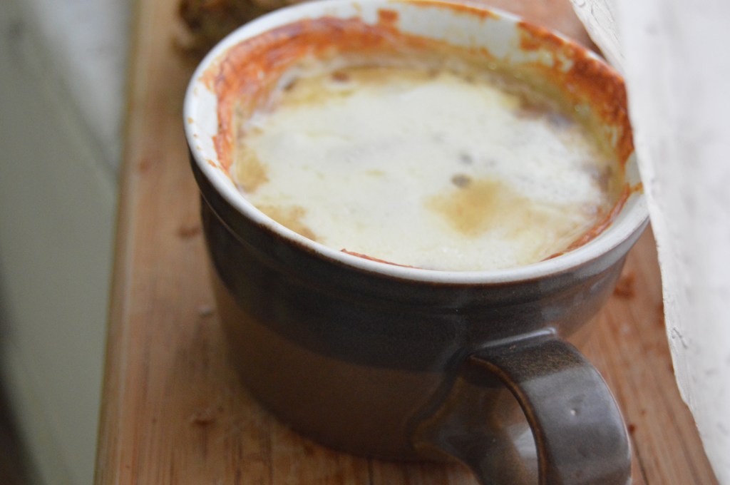 Somehow for the past two weeks I have had a sore throat and yesterday’s snow storm just pushed everything to the edge. So I came home feeling like crap and ready to do something that made me feel better. Which of course meant my mom was somehow involved. She gave me her recipe for french onion soup, and although I added a few touches of my own, it definitely brought a taste of home to this snow covered tundra. This recipe was a bit of a labor of love because I decided not only did I want to make the soup from scratch, but I also decided to make the bread for croutons from scratch as well. So it was an afternoon of warmth and heartiness in my kitchen, but the end product was well worth it. Although the bread recipe did not go as planned and I will not be using it again. But! If you are looking for a very easy but delicious recipe, give this a go, its great for the snowy weather we have been having!