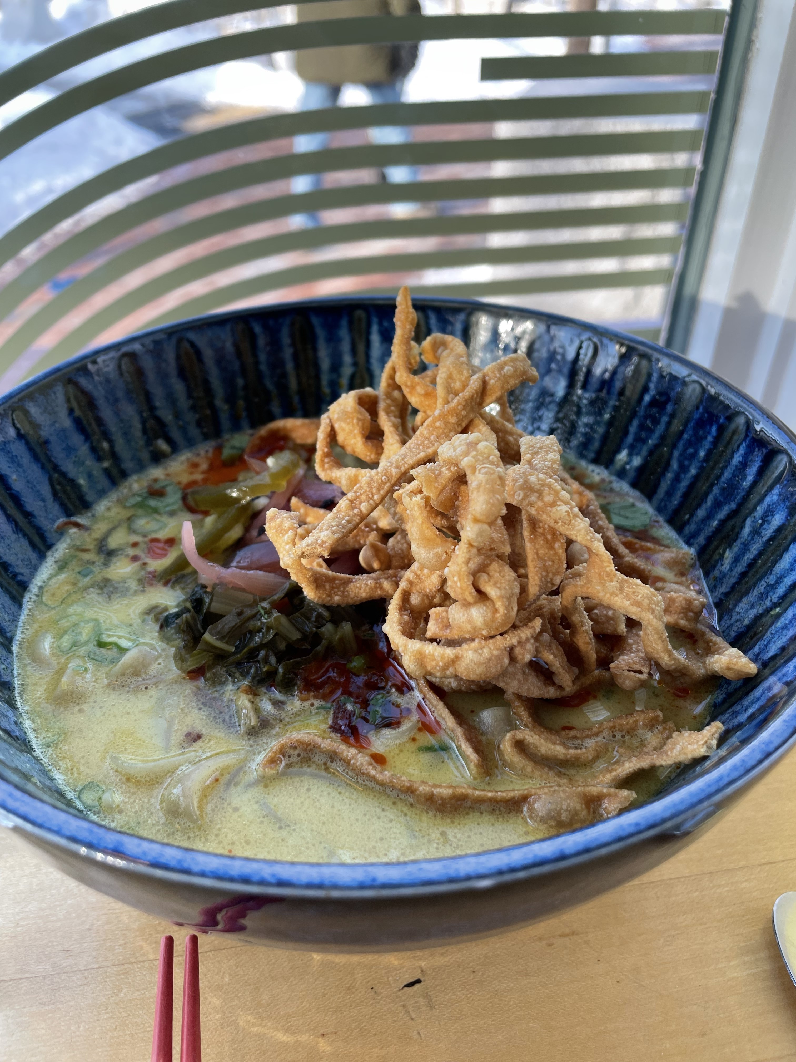 Normally I would say we tried a bunch of stuff and yatta ya, NO. When we go to Honey Paw we get the same things because they are JUST too addictive not to. And it looks like this: App- assorted pickles, Entrée: Half Chicken and Khao Soi. Although the khao soi is one of our favorite dishes at any restaurant we’ve ever eaten at, so we have also gotten 2 orders of it, so no fighting over it had to occur. They have a diverse and interesting menu, but we will always get the Khao Soi.