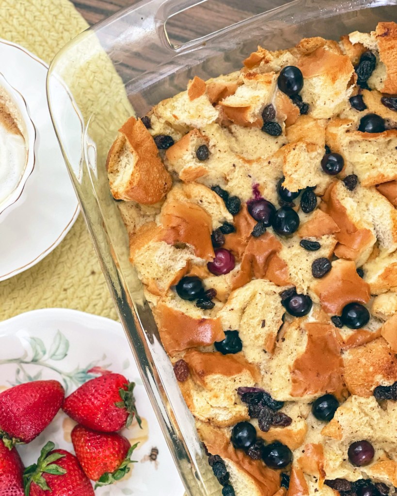 With Memorial Day last weekend we are officially kicking off into summer and all things grilling season. If you, like us, find yourself with all sorts of leftovers after a BBQ here is a recipe to use up one ingredient you may have leftover: Hot dog rolls! This really simple bread pudding is great as dessert or breakfast. With maple notes it smells great from bake to plate! You can customize it with whatever fruit you may have at home, and its a great way to put those buns to use!!